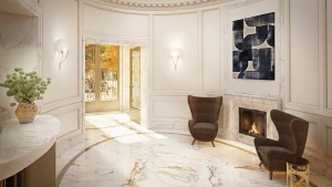 Situated above the Museum of Modern Art and a few blocks from Central Park, the starchitect Jean Nouvel-designed 53W53 is a collection of 145 unique residences with super-luxury, hotel-like services and amenities. With interiors by Thierry Despont, Residence 18A is a 2,462 square foot north and east-facing two bedroom featuring high ceilings, 4″ wide plank solid American oak floors, fully customized kitchens and baths, and elegantly crafted furniture-grade mahogany doors of over 9′, with custom designed bronze hardware inspired by the tower’s distinctive silhouette. The master bath is clad in Noir St. Laurent marble, golden travertine and Verona limestone, with a custom-carved stone vanity and medicine cabinet above. The master bath also features radiant heated floors and Dornbracht fittings and accessories.