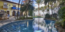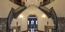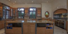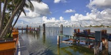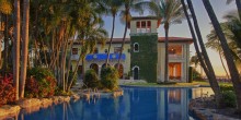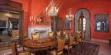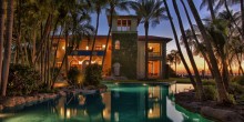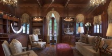 This incredible Mediterranean-style, gorgeously guilded manse recently sold for $30M on the exclusive La Gorce Island. Boasting 70,000 sq. ft. of space, four buildings (main house, guest house, staff quarters, and guard house), painted ceilings, gold-leaf accents, gym, library, safe room, rooftop lounge and home theatre. Billionaire buyer Michael Lee Chin will be relaxing in style in the depths of this perfect estate.