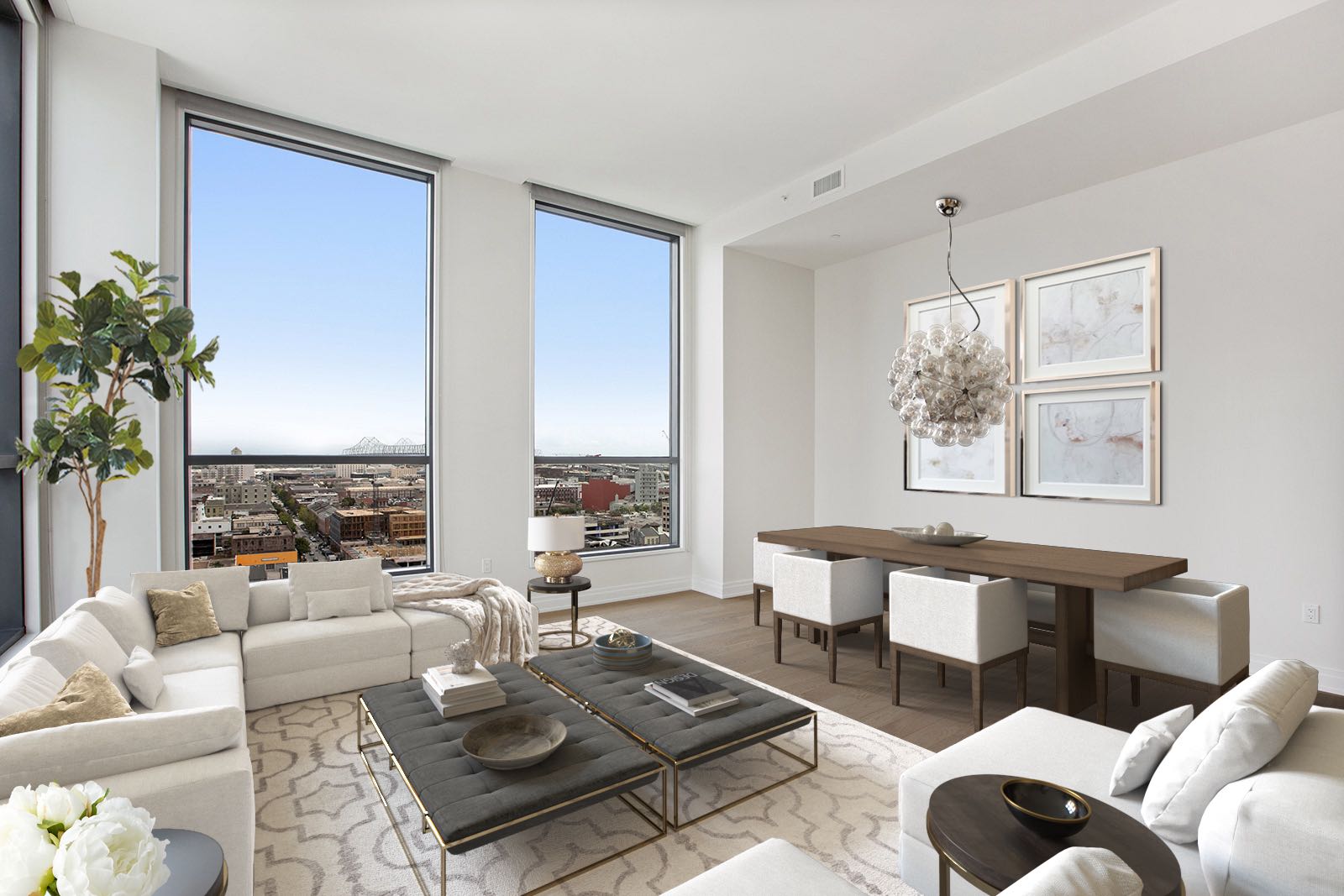 The Standard is the newest address on Julia Street’s Gallery Row. This stunning penthouse is a half floor with grand private terrace overlooking the skyline of New Orleans. Amenities include a saltwater pool with cabanas, pool house, fitness center, library lounge, outdoor kitchens and dog run.