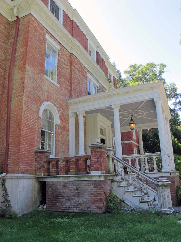 Originally a delicate, Federal-style mansion built in the early 1800’s after the first home burnt down, in 1861 the then-owners tacked on a strange heavy marble staircase and marble porch to the front entrance along with rounded Victorian style windows on the first floor. Further “improvements” included an additional third floor with windows that didn’t match those on lower floors.