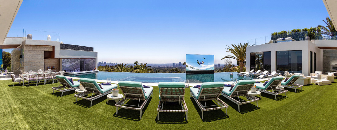 The four-story masterpiece, equipped with the most advanced home technology system in the country, is designed for seamless indoor-outdoor living with 270-degree views of L.A., from the mountains to the Pacific Ocean.