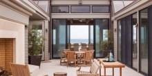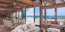 The house is solid, yet elegantly transparent due to expansive windows and an open floor plan, which provides sea views throughout. A soft palette complements the natural hues of the sand and the blue ocean and sky, creating a seamless indoor/outdoor living space. A protected central courtyard with beach views boasts a massive fireplace and inviting hot tub. The main living spaces have direct access to the outdoor areas, where ocean outlooks provide a tranquil backdrop for entertaining friends and family. The living room, great rooms, and kitchen maximize views and have a comfortable seamless flow. The patio runs the length of the house and blends in to its coastal surroundings.