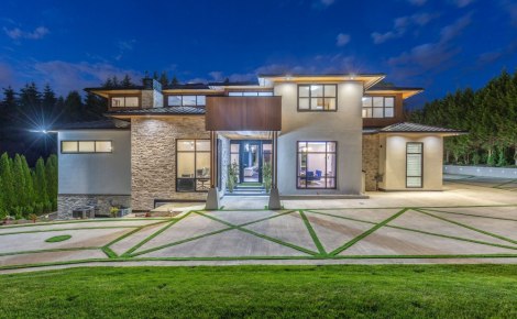 The home seamlessly blends cutting-edge design with artistic elegance. Perched above the lot and backing onto Markland Wood Golf Club.