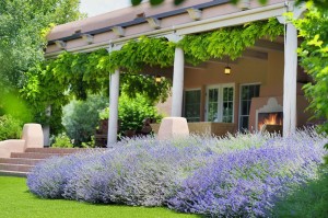 Surrounded by courtyards and lush mature landscaping, this elegant residence artfully combines classic Santa Fe design with European architectural influences.