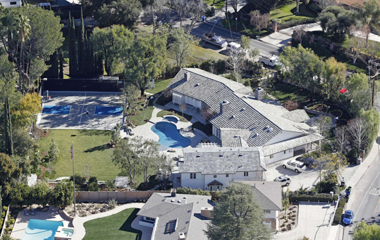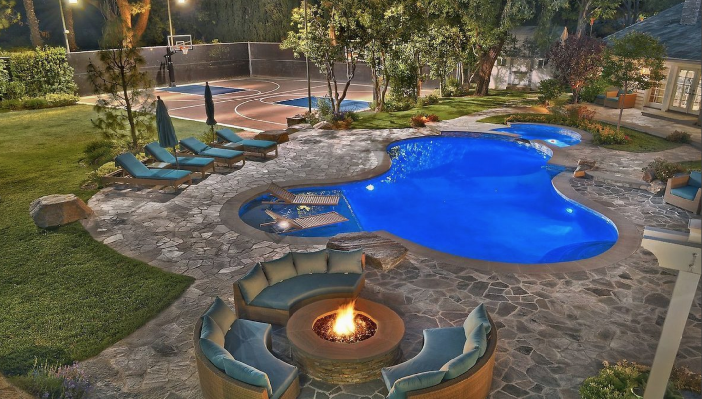 Azalea and Young bought the six-bedroom, eight-bathroom Mediterranean style estate on .83 acres of land in September. The gated estate reportedly has a spa, butler’s pantry, barbecue pit (insert “shrimp on the barbie” joke here) and a full basketball court (naturally, but no recording studio?). The 6,630-square-foot mansion boasts a single-story main house, and a guesthouse with a wraparound balcony and private entrance above a two-car garage.