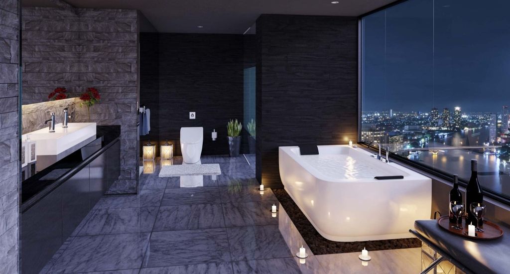 While the rest of a penthouse has become an open-floor plan to suit modern, sociable lifestyles, the bathroom has become an even more private space. Offering an escape from the hubbub and chaos of the city, a picture window keeps the sleek tub at center stage, in terms of the view and personal wellness.