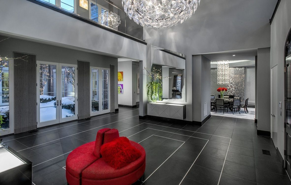 Among the intriguing custom features of designer-owner Luigi Demasi’s creation are handcrafted hardware, Italian porcelain tile flooring and dramatic lighting. With its silver-and-grey color scheme dotted with a smattering of unusual décor (including intimidating light fixtures and a chrome human skull), the 22-room residence boasts an arguably “cold” and “eerie”—albeit extremely contemporary—inside.