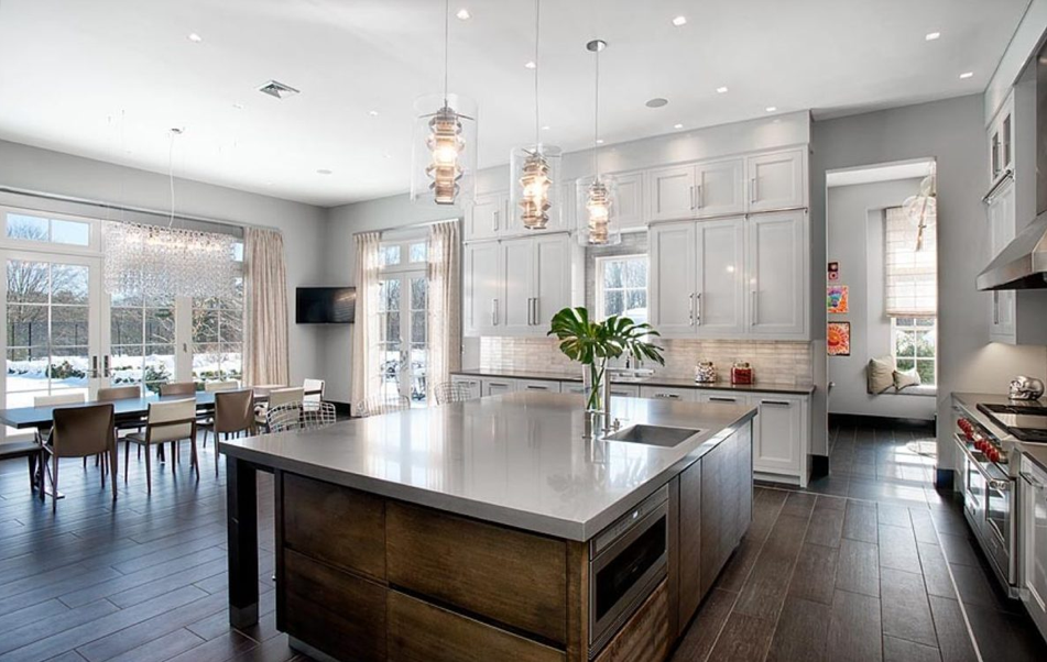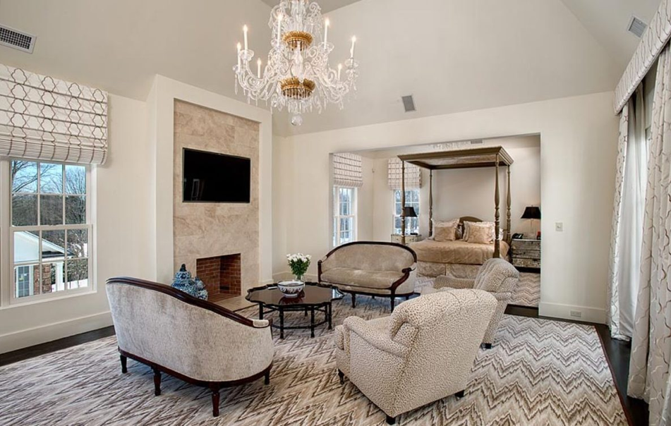 From the outside, the elegant structure—which sits on a 3.5-acre lot—hints at a similarly stately and traditional interior.