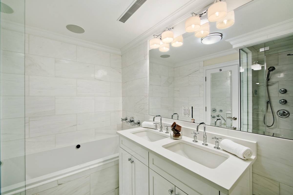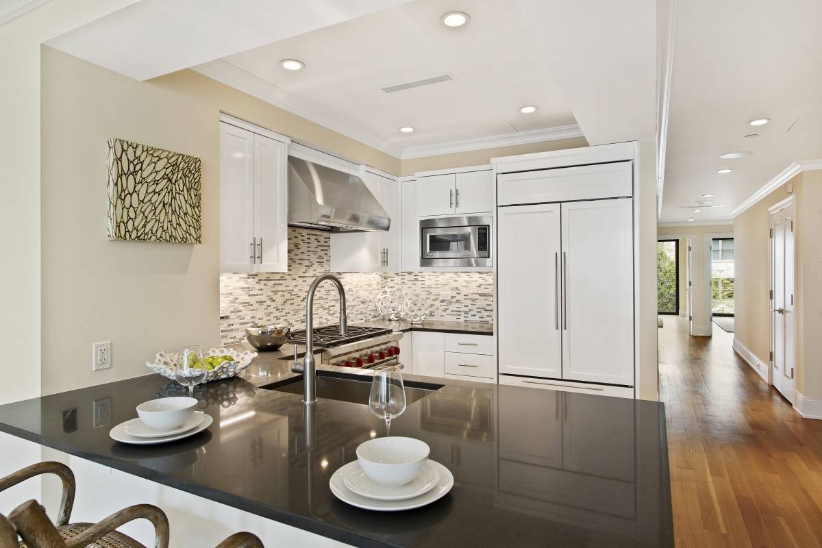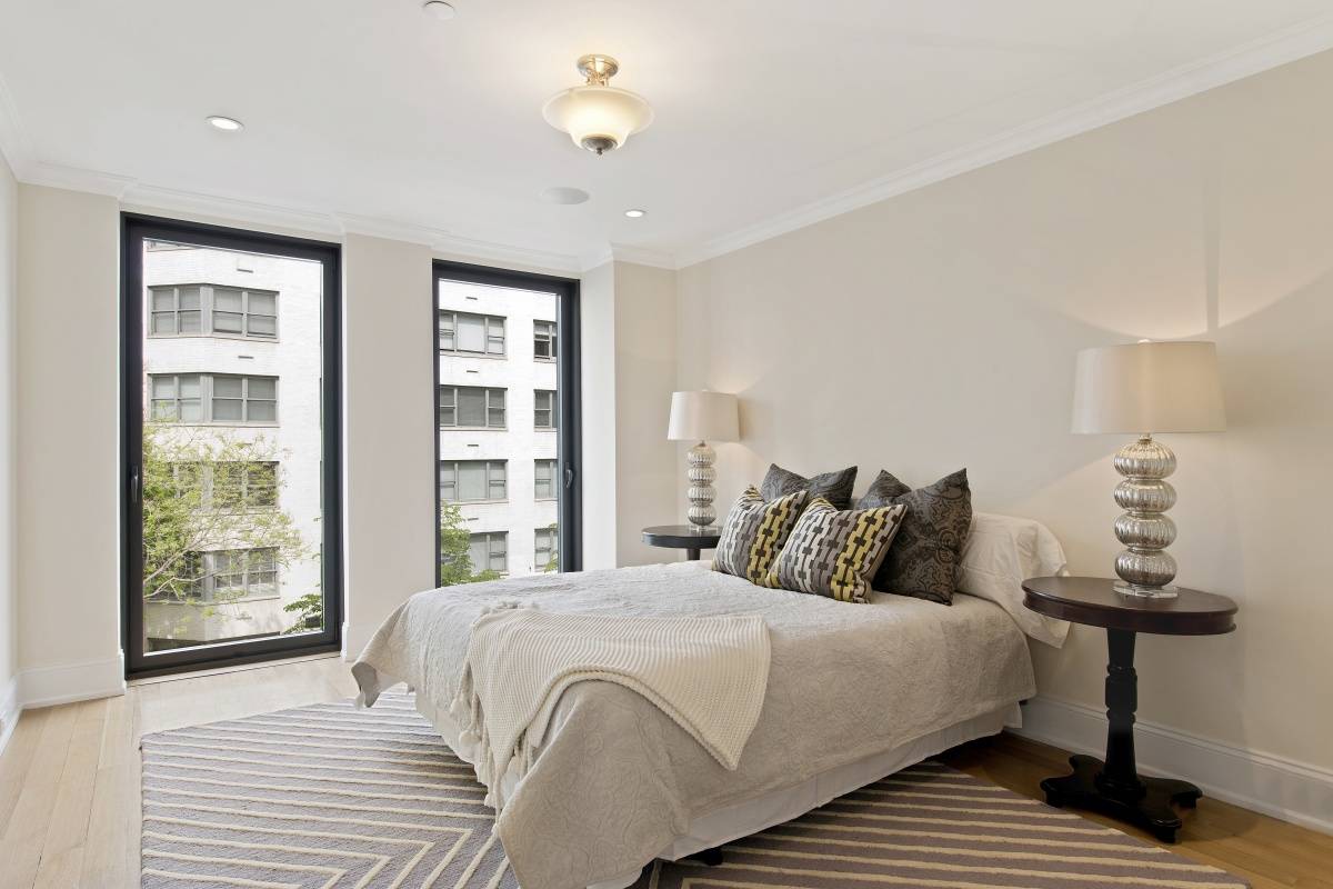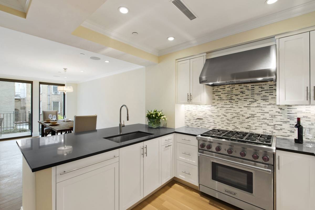 Each of the posh building’s homes boast a number of highly desirable features, including a wood-burning fireplace; white oak flooring with radiant heating; double-paned windows; a washer and dryer; marble-adorned baths; and a splendid kitchen equipped with a custom tile backsplash, CaesarStone countertops, SubZero and Wolf appliances. The high-end edifice has an expansive fitness center, as well as ample storage space on its lower level dedicated to each unit.