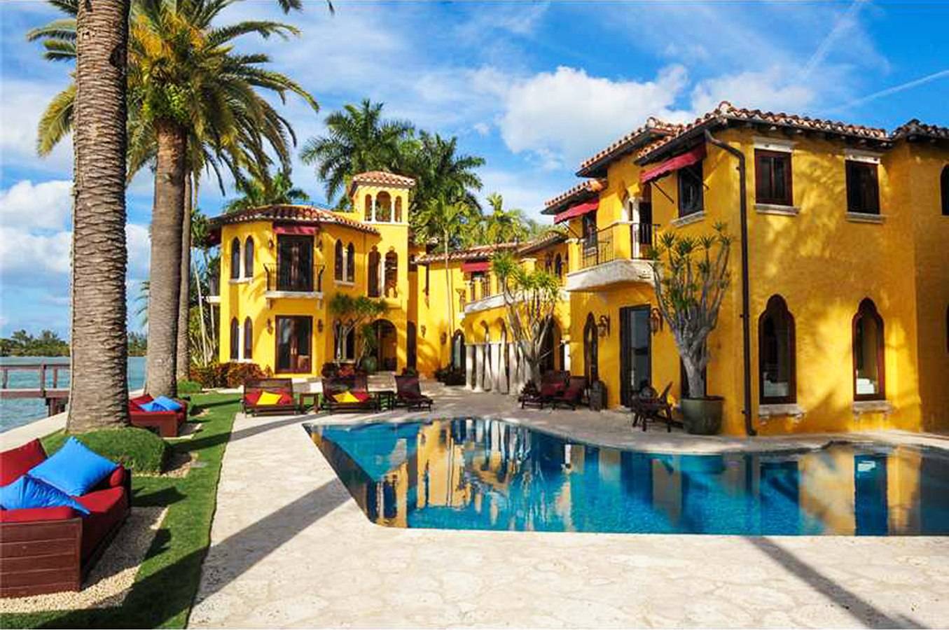 This sunny, Moroccan-style home on Miami Beach—currently listed for $24.95 million—touts several unique and artful features, including a mosaic fountain, a glass-beaded geometric pool, and striking architectural detailing.