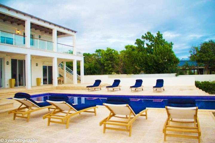 Located along the southern coast of Anguilla, this four-bedroom home features unobstructed views of the Caribbean Sea and neighboring St. Martin.