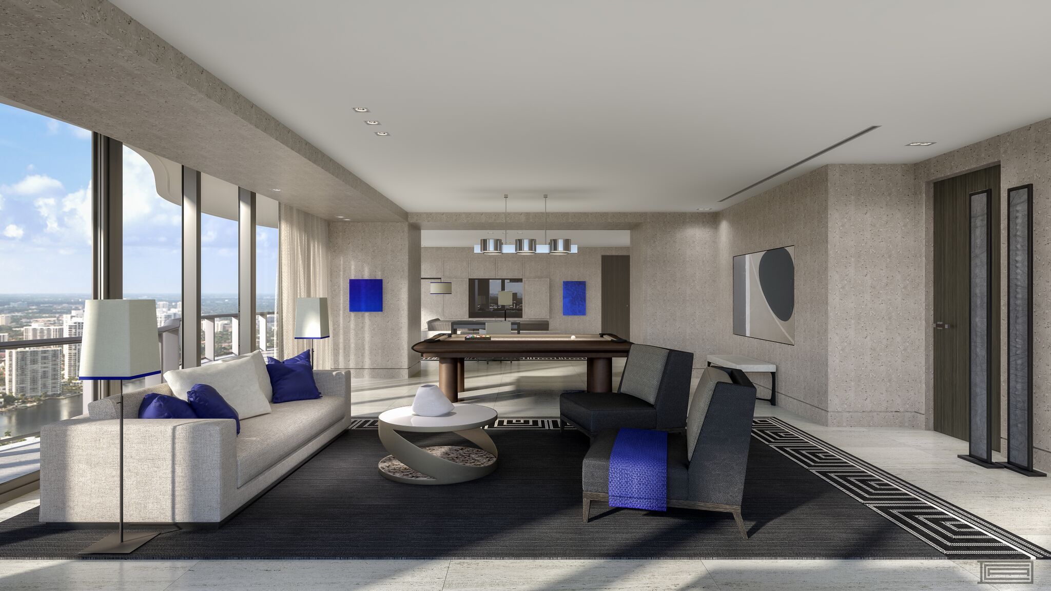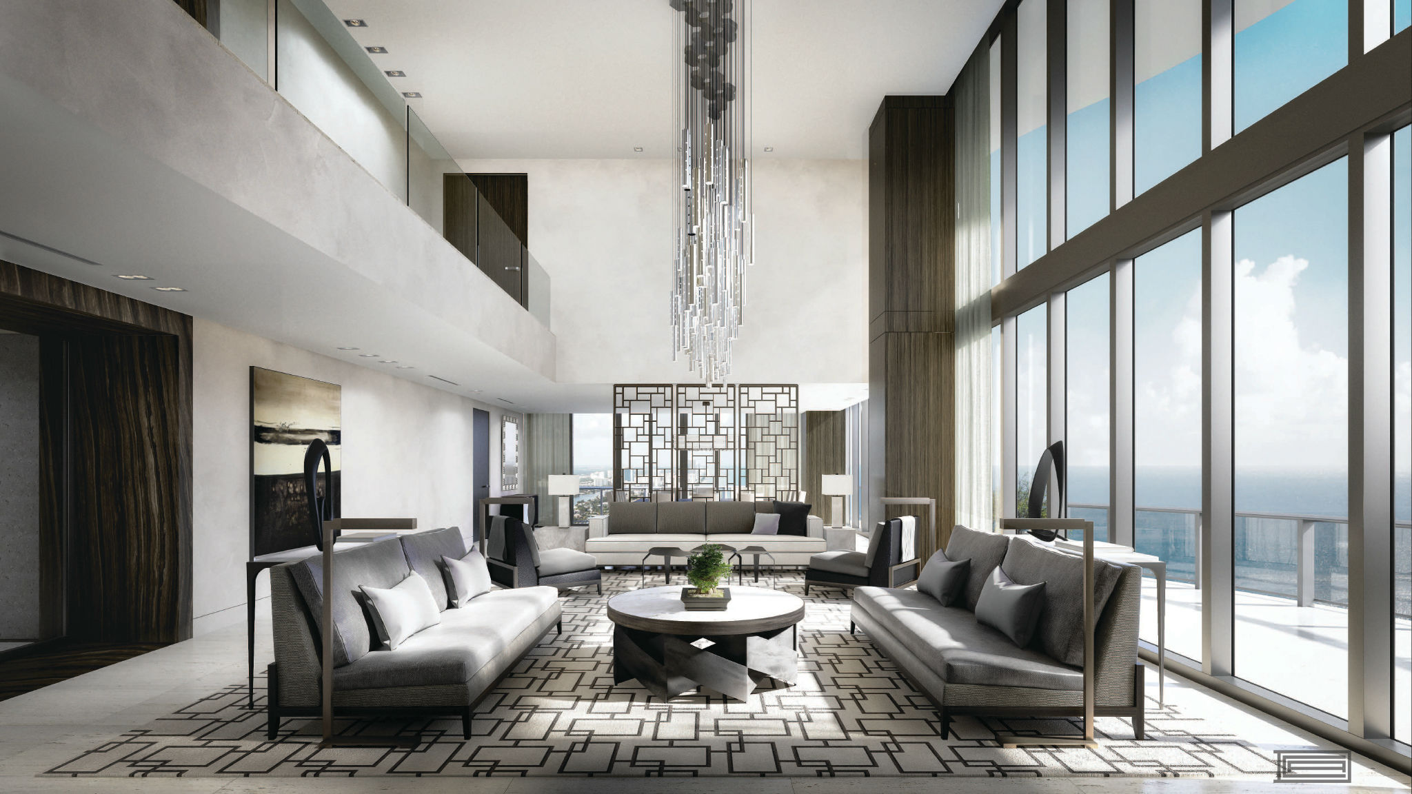 The 46-story oceanfront, ultra-luxury tower, where the residence resides, was named in reference to an emblem of royalty. The gift of a diamond represents the opulence of the 17,000-square-foot residence fit for the finest buyer.