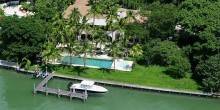 The waterfront residence boasts a 2-story rotunda, a vaulted ceiling, a theater, a wine cellar, a Tensui water purifier for entire house, lutron/creston systems, and a master suite featuring massive walk-in closets with security doors and a private terrace.