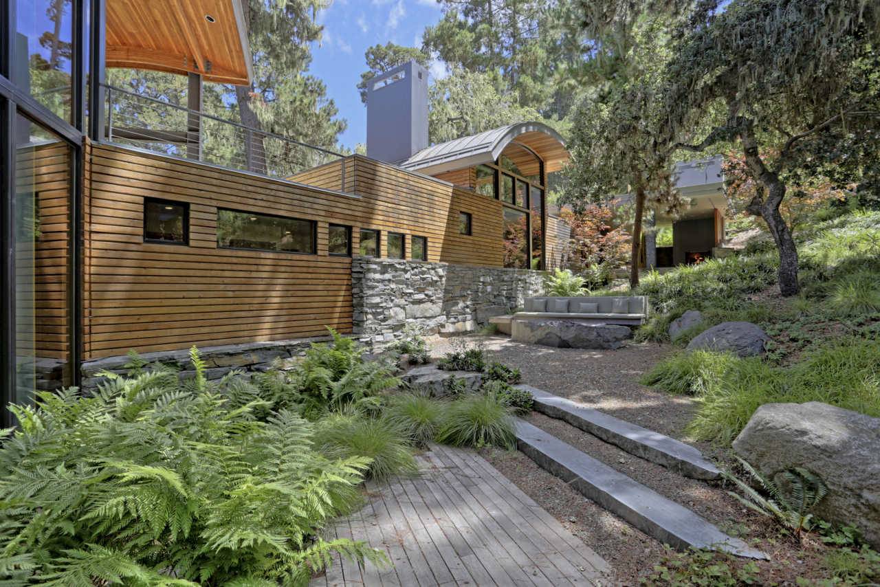 Sited on 6.5 acres, this 8,963-square-foot estate in the Carmel, California neighborhood of Jacks Peak, features an impressive 75-foot great room with a barreled ceiling and a suspended loft, adorned with a Fu-Tung Cheng concrete fountain.