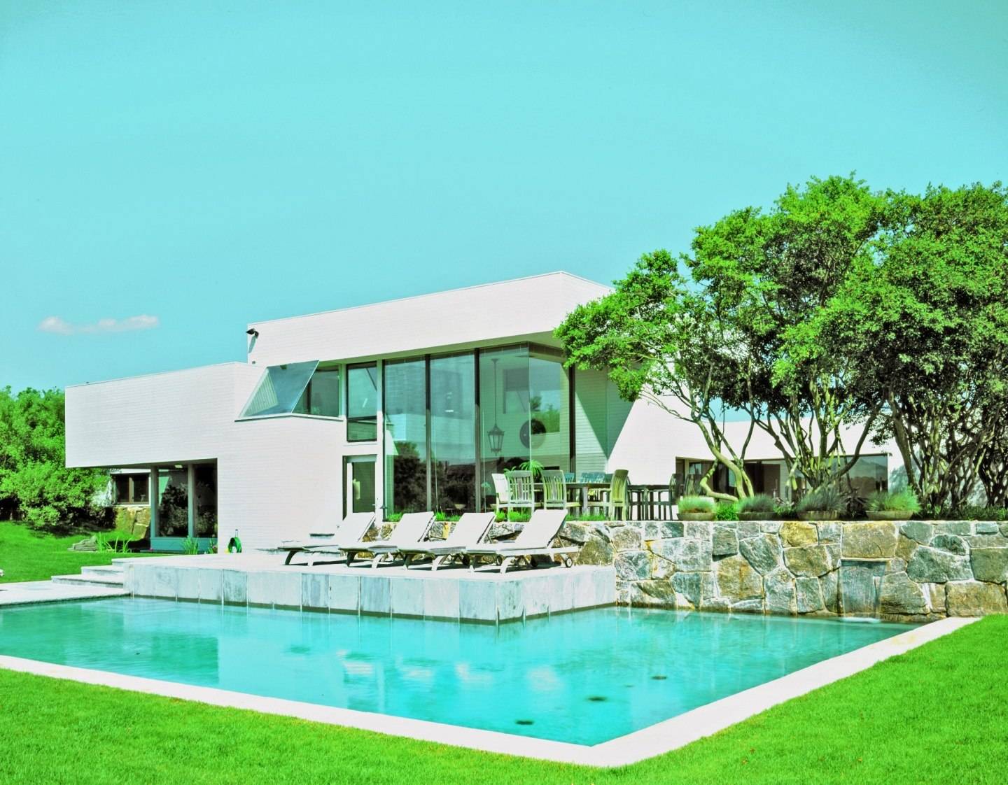 Designed by prolific architect Norman Jaffe, this 4,100-square-foot abode—now priced at $8.995 million—rests on over an acre of grounds on Sam’s Creek in Bridgehampton.