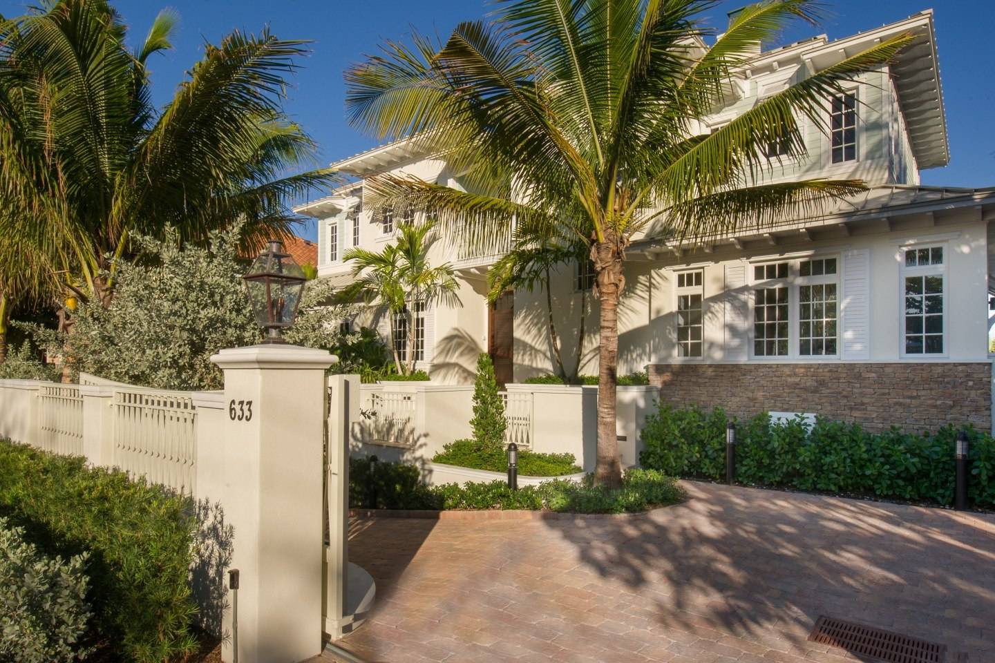 Featuring West Indies-inspired architecture, the elevator-equipped home—which touts a guest suite on its main floor—showcases a master suite with a marble fireplace and large marble bath, plus French doors that open to its own private porch with views of the Atlantic. Outside, there’s also a waterfront swimming pool and a summer kitchen.