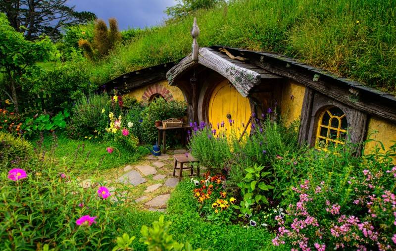 The Hobbiton movie set is located in Matamata, New Zealand. The house was featured in The Lord of the Rings and The Hobbit trilogies. The home is available to tour, which includes a drive through the 1,250 acre sheep farm, and a guide who shares details on how the set was created.