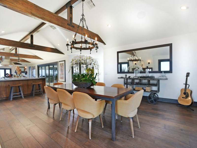 Featuring four bedrooms and four-and-a-half baths, the spectacular, barn-style home—presently listed for $4.479 million—is accompanied by an attached one-bedroom casita with a separate entrance.
