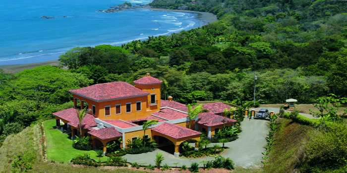 With over 8,500 square feet of living space, Casa Paraiso—a Guatemala-style mansion in sited on a knoll in Puntarenas, Costa Rica—magnificently overlooks the Pacific Ocean.