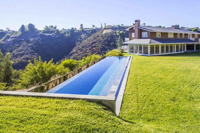 Millionaire Jay Penske’s sweet infinity pool overlooks gorgeous valley scenery and is surrounded by acres of perfectly manicured lawns.
