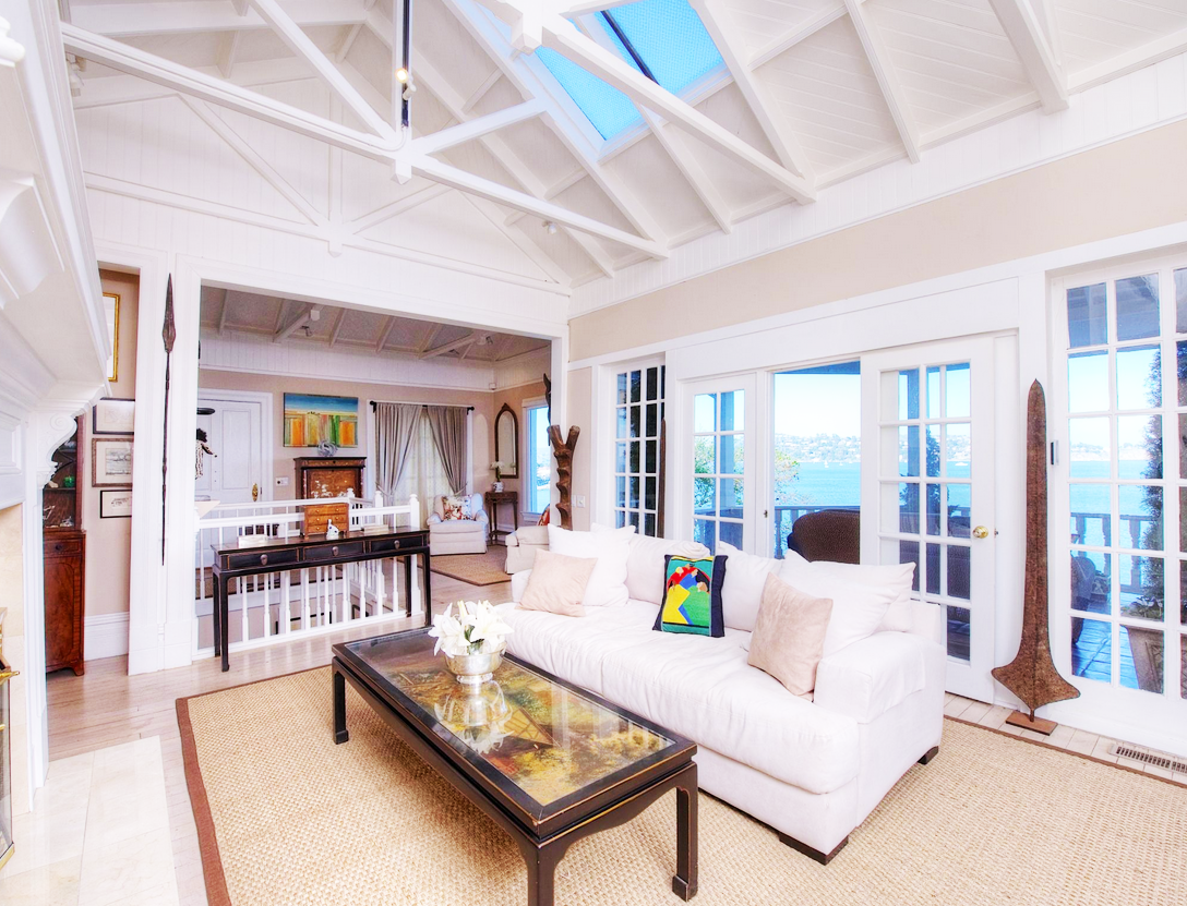 Offering panoramic views of Angel Island, Alcatraz, and Bay Bridge, this 3,200-square-foot home features 12 rooms including four bedrooms and four baths.