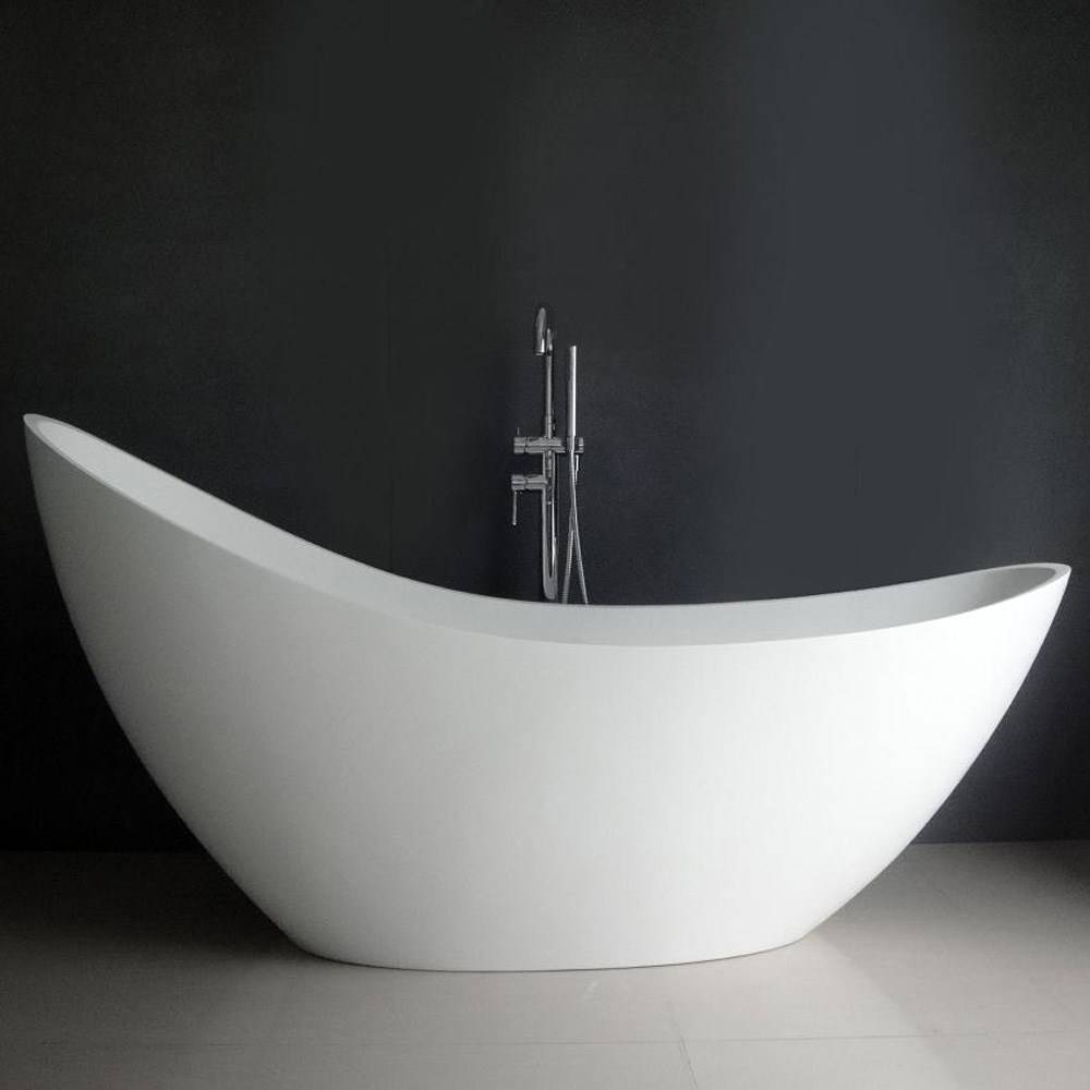 This freestanding, six-foot tub provides spacious bathing for up to two people. Smooth stone creates a matte finish, while being easy to clean. A slotted overflow allows for deep soaking. It is purchasable for $9,326.