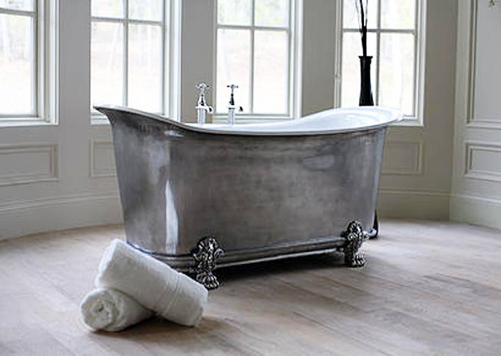 Inspired by classic European antiquities, this cast alloy tub is hand-finished and has a slow-baked enamel interior. The vessel stands on four ornate feet (choose between “Hoof,” “Lion’s Paw,” and “Stubby Paw”), and can be custom-designed to display a metallic or enamel finish.