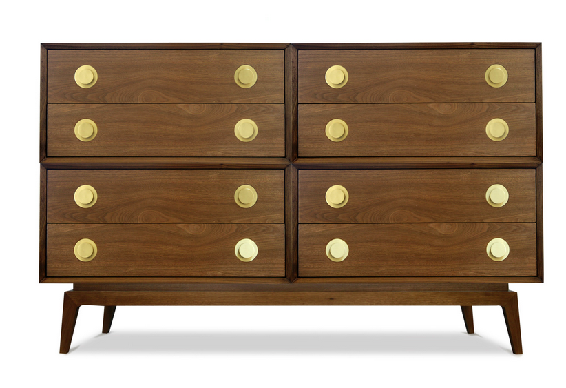 Priced at $4,095, this eight-drawer dresser by Jonathan Adler is available in walnut with brushed brass accents, or in white-stained ash wood with polished nickel detailing.