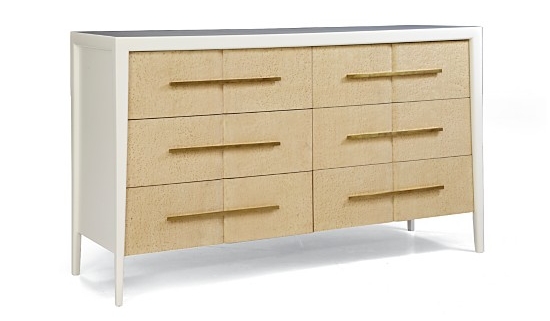 Available for $4,521, this Mitchell Gold + Bob Williams six-drawer dresser is reminiscent of a 1970s Art Deco revival style piece. Extra-long metal pulls are secured on the clean-lined lacquered case. The drawer interior features the brand’s signature red lacquer finish.