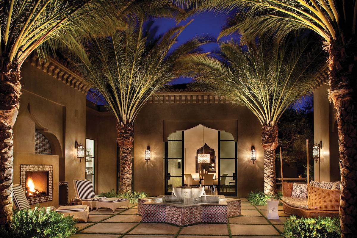 Presently up for grabs for $25 million, the four-bedroom, seven-bath home is poised on a hilltop on the canyon side of the gated Bighorn Golf Community. Enveloped by panoramic views of frosted mountains and valleys, the enviable estate features 16,800 square feet total of indoor and outdoor living space. Showcasing handcrafted wood, stone, plaster, and brass detailing—not to mention thousands of authentic tiles and Siberian oak floors—the property evokes an exotic beauty tinged with modernity.
