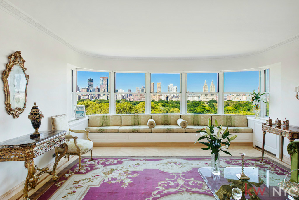 The three bedroom, three and a half bathroom apartment, listed by Keller Williams’ Richard Tayar, brings out the best in a traditional interior designed by Robert Bien, with white brick leading into two columns of bay windows. The home has the original crown molding, hardwood floors, and en-suite bathroom, with its own window looking out onto beautiful Central Park. The balcony in the apartment allows for 180 degree views of the park too.