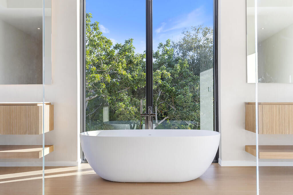 Designed for seamless indoor and outdoor living, expansive walls of glass open to a resort-style pool, summer kitchen, and lush tropical gardens. Creating a private sanctuary ideal for both grand entertaining and serene everyday living.