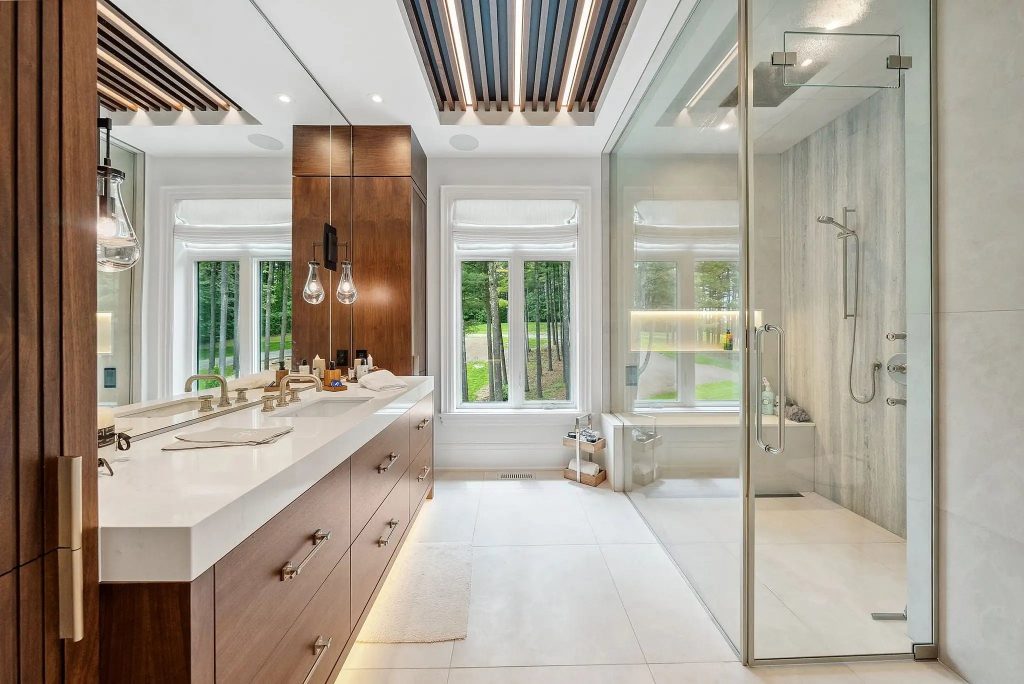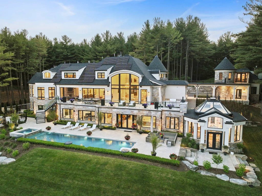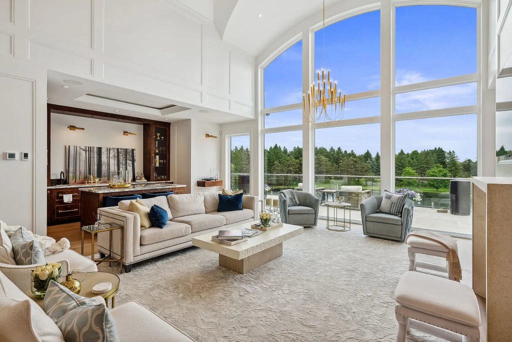 Built by Chatsworth Fine Homes with interiors by Jane Lockhart Designs, the property unfolds across 52.5 acres of forested landscape with three ponds, a cascading stream, a protected spring-fed lake, and a two-kilometer nature trail. The scale and privacy position the estate as a self-contained compound just outside Toronto.