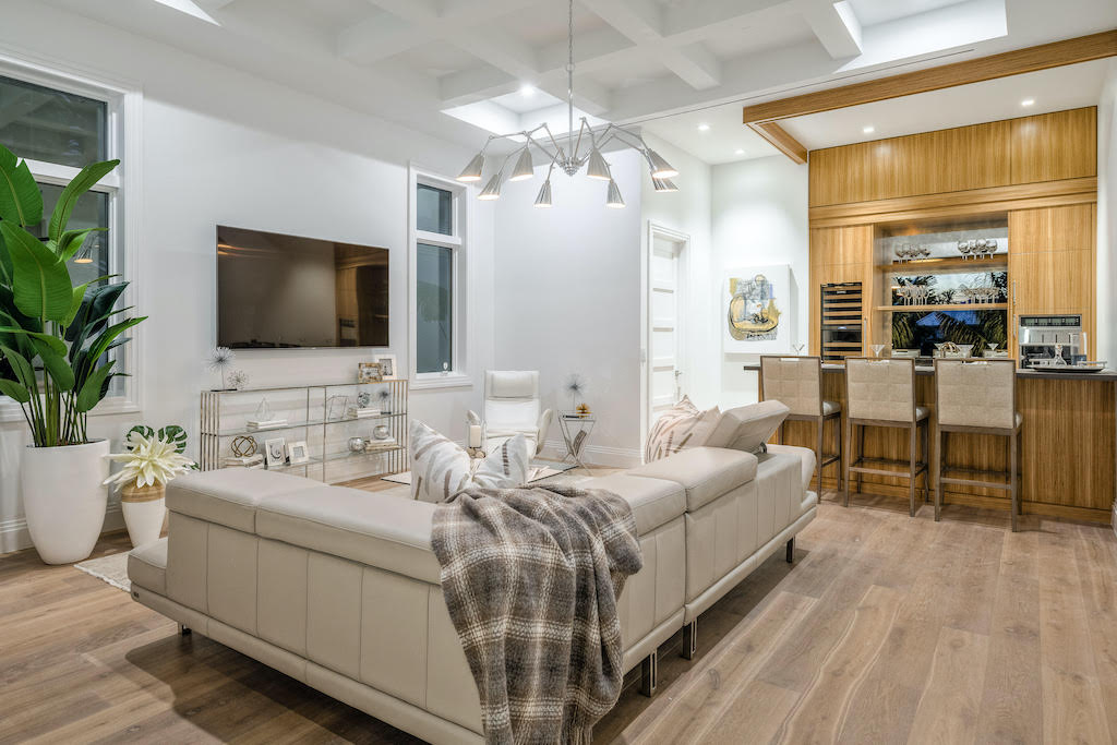 Crossing a breathtaking water feature and arriving at the commanding mahogany and glass doors, you enter into an inviting world unlike any other. Once inside, beyond the towering foyer, you’re led to a massive great room grounded in warm Legno Bastone European oak, which seamlessly opens onto the expansive outdoor living area featuring all the accouterments of resort living, such as an outdoor kitchen and a gorgeous pool and spa area with fire pit and lounge. The single-story home is fully automated and amazingly efficient, making it one of the most livable and practical properties in Port Royal. It even has garage space for four cars. Best of all, the quality is obvious at every turn — and wrapped in a package you’ll never want to leave. Yes, this home is an absolute oasis.