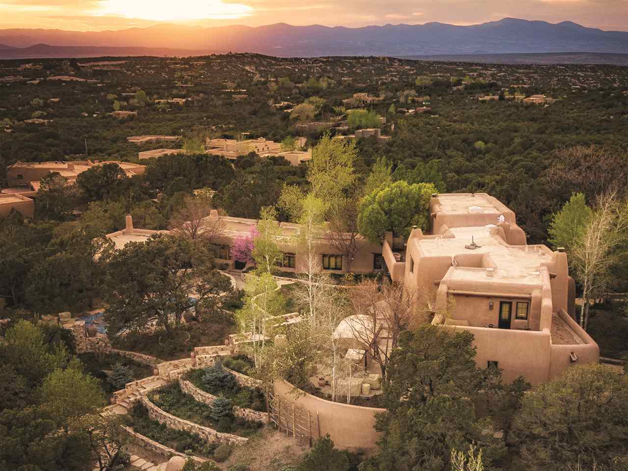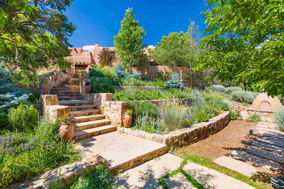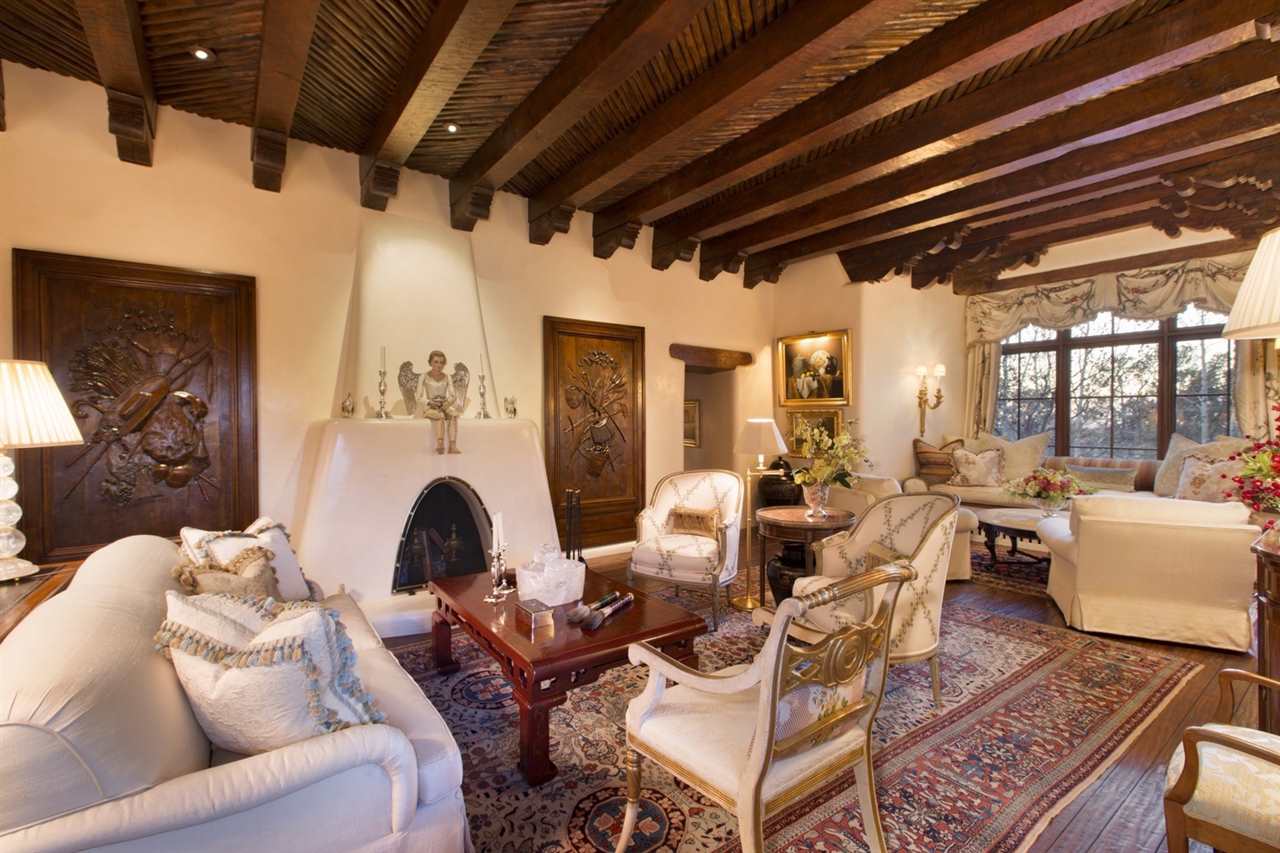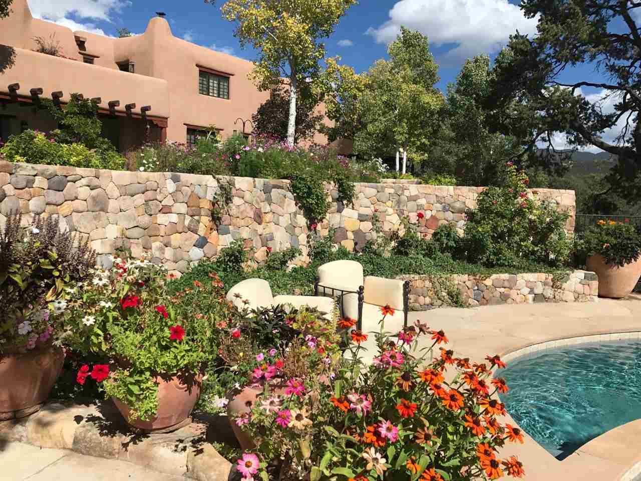 This magnificent estate, an 8300 square foot adobe masterpiece, is surrounded by 11 Acres of lush, terraced gardens and stone lined walking paths. The main house is sited to overlook the inviting pool and to take advantage of the breathtaking New Mexico sunsets. The property has a park-like feel as the numerous bark walking trails wind around the property and lead you to a variety of private sitting and view areas. The Classic Clay Tennis Court has a viewing platform and has the feel of an exclusive private resort. One could while away a lazy Sunday afternoon amongst the towering Aspens, colorful flowers with vines spilling over hand stacked stone walls and planters. Only ten minutes to downtown, and yet it is a world unto itself…so private and tranquil.
