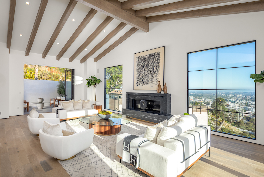 This designer chic Outpost Estate villa is a hybrid of old California and 2019 open concept living, with panoramic views of the city, ocean, and Santa Monica Mountains. Meticulously remodeled with the utmost in design and detail, this sophisticated home has great volume and scale throughout thanks to soaring 20ft ceilings. Highlights including a step-down living room with head-on city views, chef’s kitchen with professional appliances, and pocket doors that open to an expansive outdoor terrace, perfect for indoor/outdoor living. Descend the curved staircase to the master suite reminiscent of the finest hotel, complete with dual spa-like bathrooms and large double closets. An entertainers paradise awaits on the lower level, with a secondary master suite, climate-controlled wine cellar, and vast game room with bar. Three additional bedrooms with en-suite bathrooms complete the home. A rare opportunity to own a house of this caliber, in one of the most desirable “Old Hollywood” enclaves of the hills.