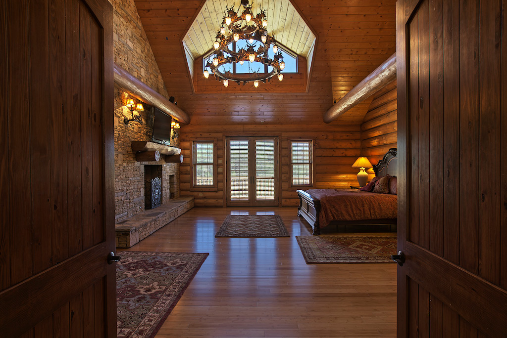 Timber Creek Lodge was built in 2007 and features over 24,000 square feet, eight bedrooms, and ten bathrooms. The grand lodge is a distinguished and prominent figure on the landscape, immediately drawing the eye after a winding drive through a beautiful timber forest. The cobblestone driveway ends in a covered portico and two sets of stairs that lead to the main floor of the home.