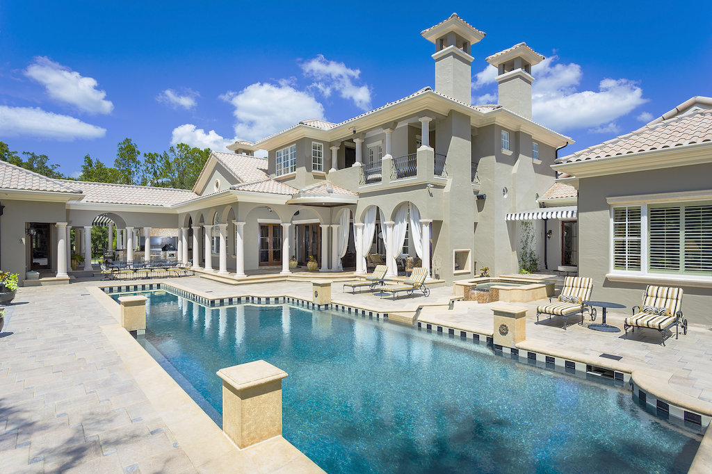 Exclusive Turnbury Wood enclave of 4 exquisite estate properties in the heart of gated Tampa Palms. Privately gated and boasting over 10,100 sq. ft. of superior quality construction and refined finishes on just under 13 acres. Experience the ultimate in luxury with a grand foyer and sweeping staircase, custom ceilings and woodwork, travertine and gleaming hardwood flooring, impressive columns and attention to detail throughout. Spectacular living spaces include a first-floor master retreat with opulent bath, additional 5 bedrooms, 5 full and 2 half-baths, Chef’s kitchen, family room with two-sided fireplace, bonus room, media room, his/her offices, game room, wine cellar and garage storage for 7 cars. Enjoy unmatched outdoor living areas with expansive terraces, outdoor kitchen, and fireplace, resort-style heated pool, and spa, guest cabana, putting green and lush landscape.