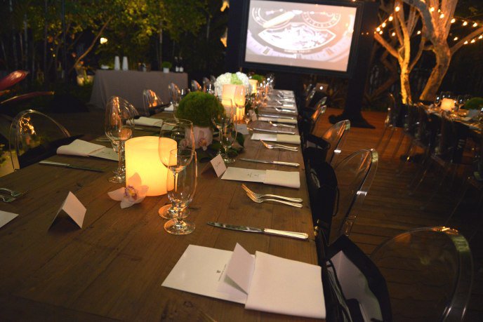 After the presentation, attendees sat down for an intimate candlelit dinner outside at the impressive Fasano Hotel & Residences Sales Center. Guests enjoyed exquisite bites prepared by the talented chef Martin Rodrigue of Faire la Fete, including creamy fresh burratta and tomatoes, a light chervil-encrusted sea bass and the crowd favorite—the savory classic opera cake with raspberry coulis. Notable guests included Christophe Claret, Luis and Judith Fanjul, Haute Living CEO Kamal Hotchandani, Veuve Clicquot communication director Aymerric Sancerre, Richard Charlton, Enrico Romagnoli, Ray and Nadine Valme, and Fasano Developers Anthony Tufariello, Henry Winterstern, and Ziel Feldman.