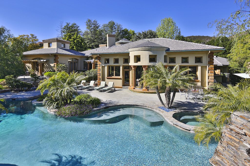Spanning over 2 acres this luscious estate surrounded by secret gardens and greenery located in Westlake Village is certainly a sight to see. This property has strong character with high ceilings, elegant chandeliers, Venetian plaster & luminous sky lights. Inside the magnificent 10,000 square foot plus estate, you’ll find an expansive 1,100 square foot kitchen; detailed with wood moldings, sprawling center island, sun filled windows & a chic breakfast nook that over looks the beach entry pool. True to its luxurious design, the 7 bedrooms each come complete wit an en suite patio. The master bedroom is like no other including a fitness center & spa. For entertainment, enjoy a theatrical experience in the Egyptian style theatre with stone walls and leather seating. Among the theatre, entertainment continues outside with the soothing waterfall, sport court, charming kids playhouse & pool. The two-story guest house is perfect for the guests of your estate. This estate shines day and night.