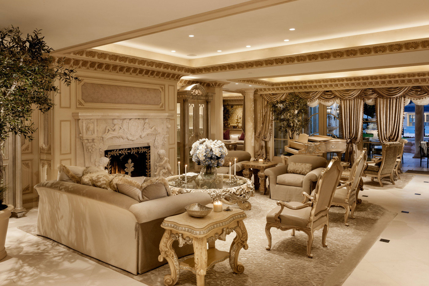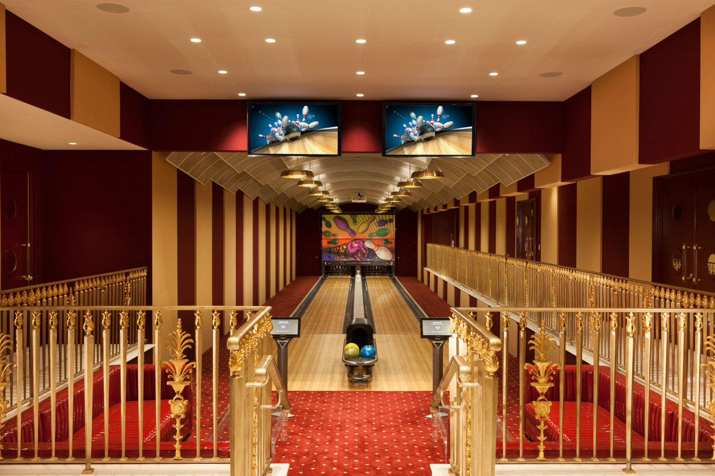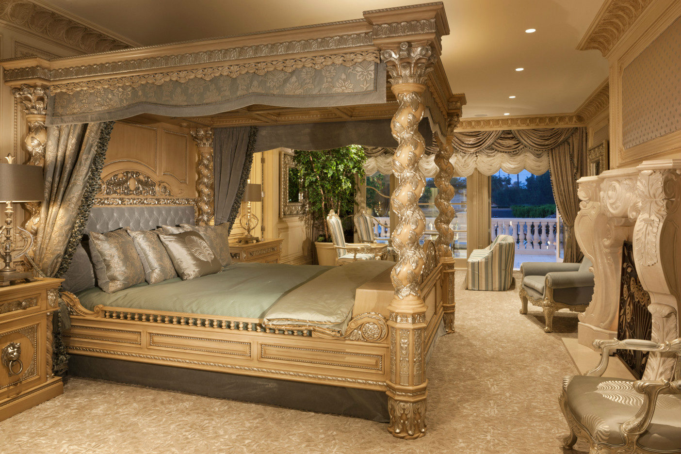 In addition to two warm and inviting family rooms, a breathtaking kitchen, 17 bathrooms, and a paneled library, the home also boasts a state-of-the-art theater with a ceiling designed to resemble a starry sky, an indoor basketball court, a beauty salon, a Qubica AMF two-lane bowling alley, a gym, multiple imported fireplaces, a self-contained one-bedroom guest house, a commercial elevator, and the most advanced, orchestrated lighting, sound and security systems imaginable with strategically placed acoustical upgrades throughout.