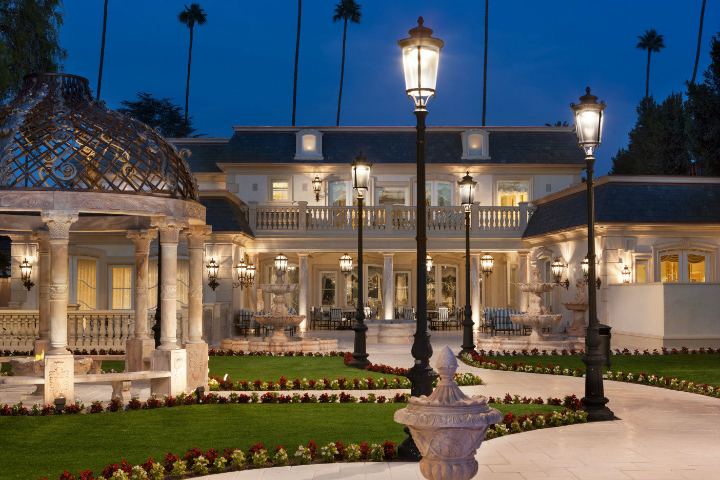 Angelic water fountains and a walkway guide you throughout the grounds, with antique lanterns lighting the way.