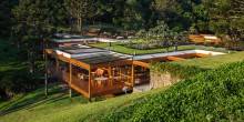 “I believe that there is a complete symbiosis between the building and the surrounding nature, such that one cannot live without the other,” says Rodrigo Marcondes Ferraz, a partner at FGMF. “The use of a mixed structure that fuses wood, steel, and concrete and weaves itself into the tall surrounding pines, the wide glass walls, the independence of the spaces connected via external passageways, and the exploration of the amazing visuals of the region make this project unique.”