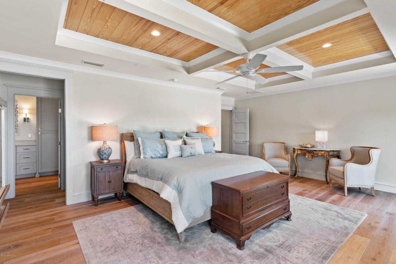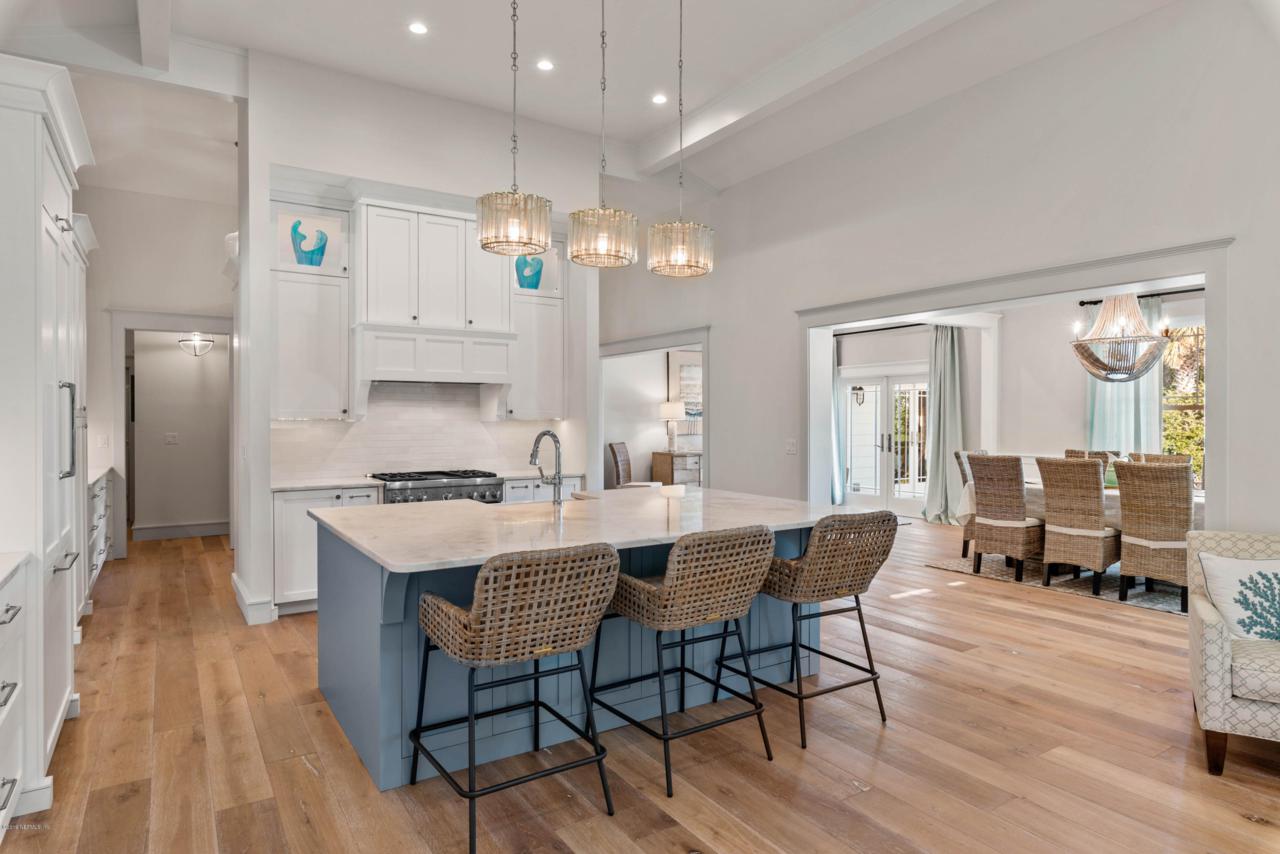 An unsurpassed lifestyle awaits you in this newly reconstructed single story home on an incredible eastern exposure lot with expansive water to golf views of the 4th green of the Ponte Vedra Inn & Club’s Ocean Course and all the way to the Blvd. A short one block to the Ponte Vedra Inn & Club and award-winning Spa/ beach. Enjoy your day poolside with a large dock, expansive pool deck and deep covered lanai with an outdoor fireplace. The coastal modern construction is top of the line everything. Wide-open floor plan for entertaining, designer lighting, fabulous wide plank natural wood floors, a cook’s kitchen, shiplap and wood details throughout, coffered ceilings and lots of skylights.