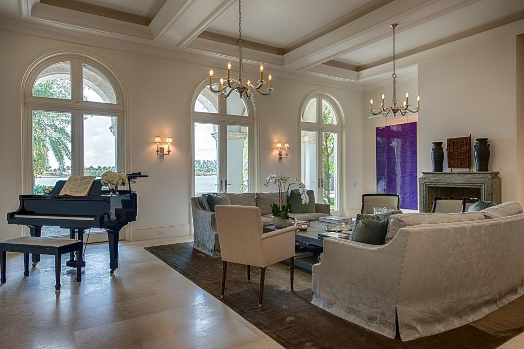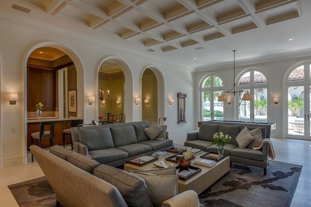With 12,310 square feet of total living area, the residence includes a mix of formal and informal spaces. Wide expanses of arched windows and glass doors not only allow natural light in, but also provide a seamless transition from interior to exterior living areas.