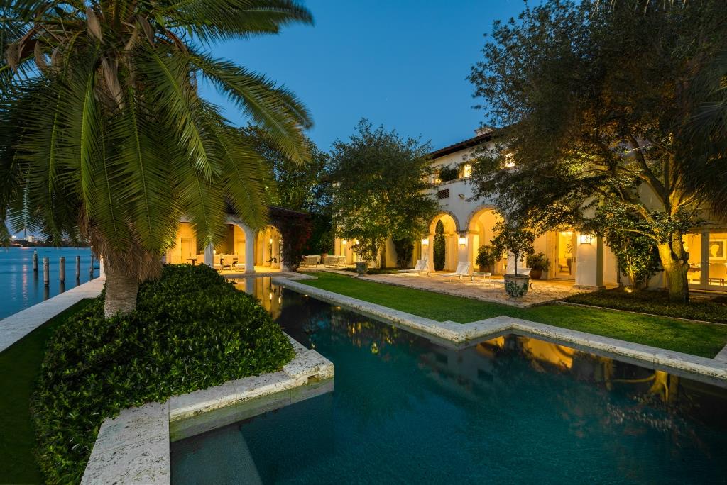 Set in prestigious Sunset Island 1, the tropical modern estate at 1633 North View Drive commands 116 feet of waterfront and offers stunning sunset views across Biscayne Bay.