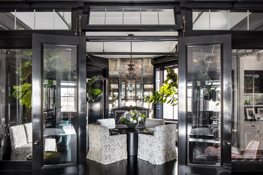 The actress first set foot in the apartment, which was once owned by Cindy Sherman, at a party over a decade ago, when she was immediately drawn to its “cinematic” character and expansive vistas of New York. Years later, her house hunting led her back to it. Reached by a key-lock elevator that opens into a private 40-foot foyer, the apartment flaunts a gorgeous blend of black and white finishes that let the thoughtful details pop.