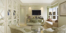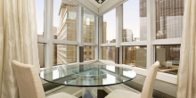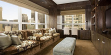 According to AOL, the 2,200 sq. ft. space is beautifully renovated with floor-to-ceiling windows, a Crestron system for lights, music and temperature, a chef’s style kitchen, formal dining room, media room, massive master suite and a customized closet system.
