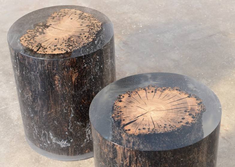 Similar to how AMMA Studio added a new, “natural” flavor to high-end home decor with its avant-garde furniture line (which featured tables made of Himalayan rock salt and cement), Italian creative company Alcarol—founded by designers Andrea Forti and Eleonora Dal Farra—has created its own spin on organic furnishings with pieces made out of raw materials suspended in resin: a sticky, biotic substance harvested from trees and plants.