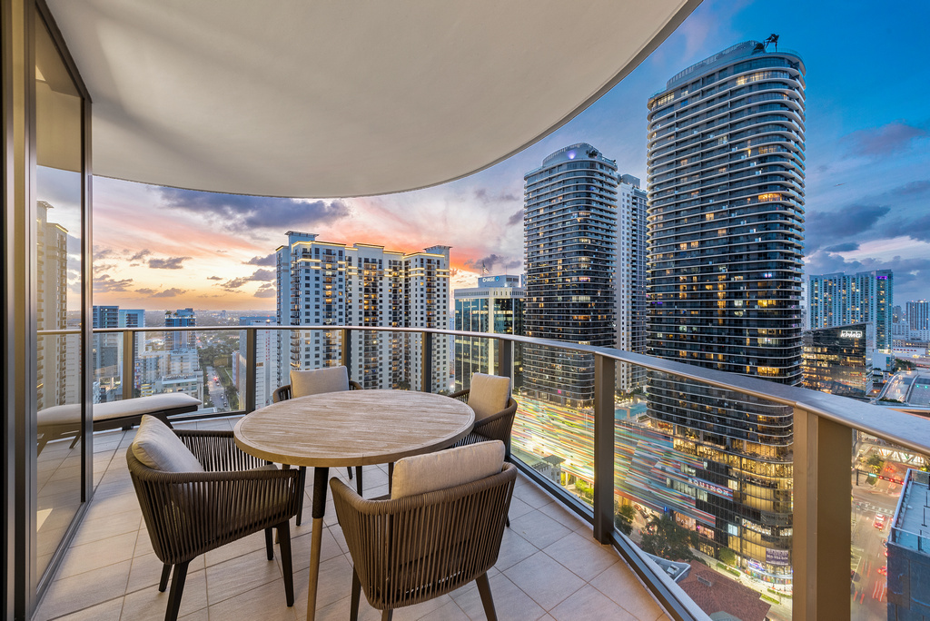 Brickell Flatiron, an architectural masterpiece, brings elegance and sweeping exposures to elevate the Brickell Skyline and offer unparalleled living experiences. Residence 2712 features 2 beds + den and 2.5 baths, 1356 sq ft of living space, an open-concept kitchen with quartz counters, Miele appliances, and Italian cabinetry. Two separate balconies span 500 sq ft, one of which wraps around the living area and guest bedroom of this corner home. The entire home, completely furnished and decorated by renowned designer Steven G, is offered turn-key. Exceptional amenities include concierge, EV charging on every level, rooftop pool/spa, a cutting edge fitness center above the city and more. Experience a fresh take on the height of classic luxury from within the urban oasis of metropolitan Miami.